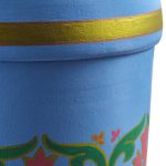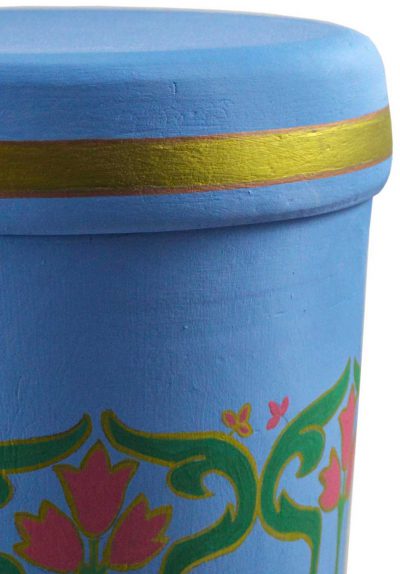 Aufwendig verziert wirkt diese, mit Acrylfarbe bemalte Urne, wie aus vergangen Zeiten. Auf blauem Hintergrund zeigen sich Blumenornamente und Verzierungen und den typischen Farbe des Art Déco.