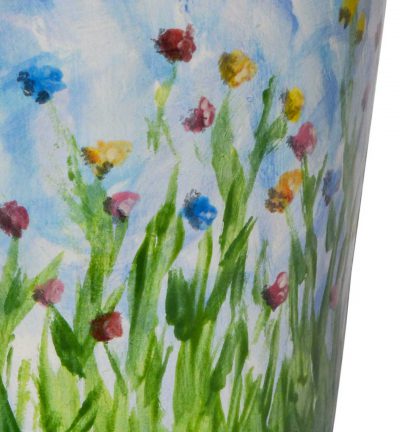 Wie an einem heiteren Frühlingstag zeigt sich eine bunte Blumenwiese, gemalt aus glänzenden Glasuren.